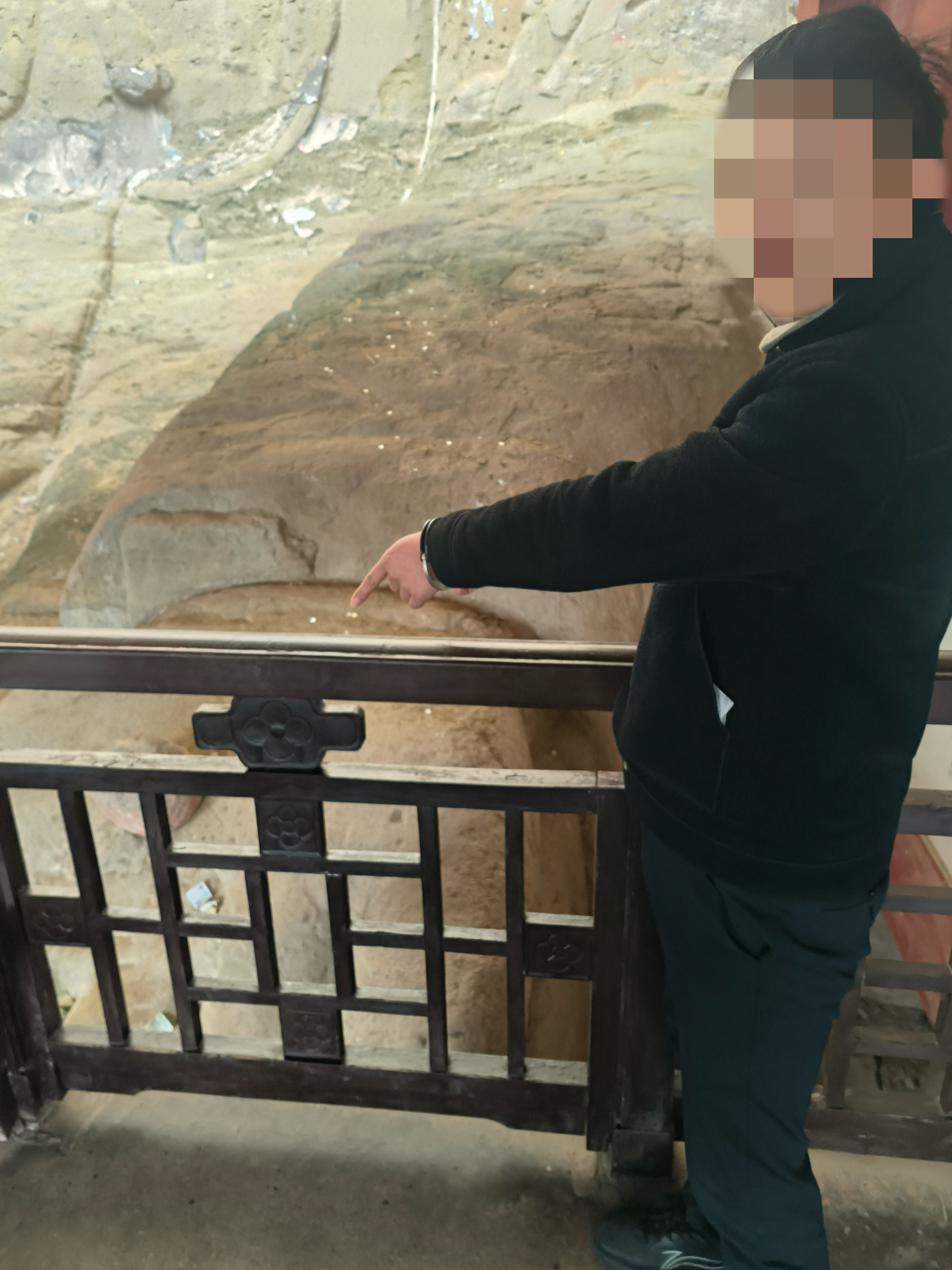 “哎?这个人在佛像上捡什么呢?”3日17日上午,自贡市荣县大佛寺景区监控室内,值班人员在进行日常视频巡查时,发现了几名年轻游客的异常举动。监控清晰显示,一名男子翻越护栏,多次从大佛手掌处抓取东西,旁边还有两人“望风”,形迹可疑。工作人员立即固定视频证据并报警。