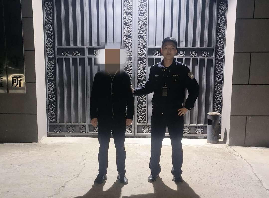 违法嫌疑人(左)被警方抓获